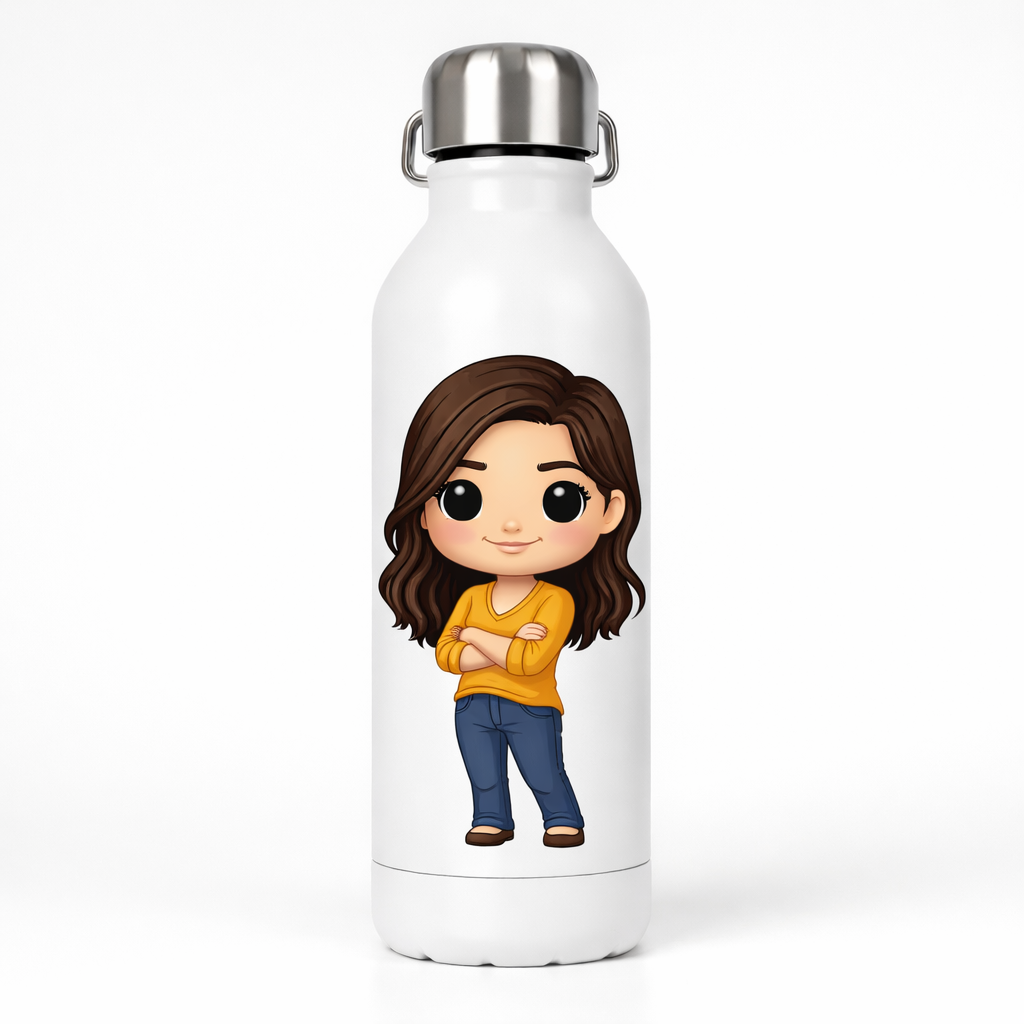 Botella Blanca Personalizada – Caricatura Estilo Funko a partir de Foto