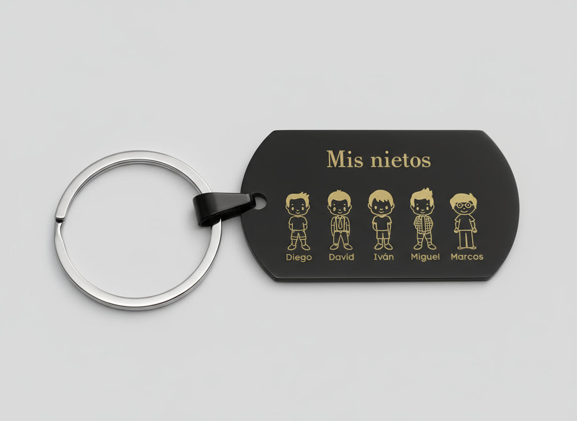 Llavero “Mis nietos / Mis nietas” personalizado – placa metálica grabada